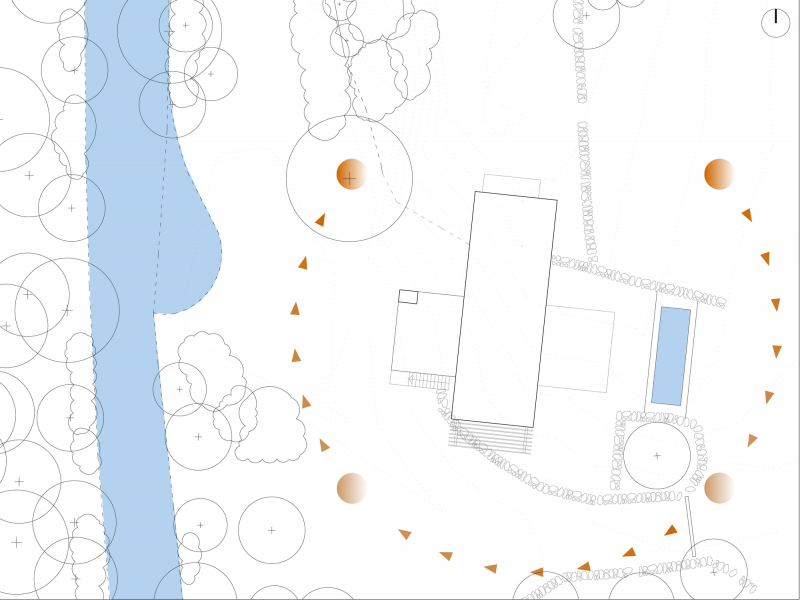 Bradley’s design emphasizes energy efficiency, featuring natural insulation and windows strategically placed to capture sunlight. The layout maximizes space and functionality while fostering a strong connection to the outdoors, with minimal environmental impact.