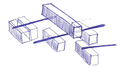 - Third, the team installed a grid of steel beams across the containers to support concrete roof slabs. This framework unified the structure while preserving the openness of the interiors.
