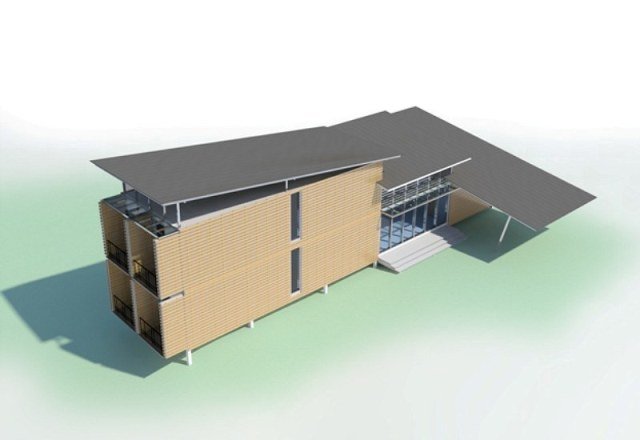 Built on a concrete pier foundation, the home has a light footprint on the surrounding land. The large shed roofs keep sun off the containers and minimize heat gain, while directing rainwater into a large cistern underneath the house. Grey water is recycled and used along with the rainwater in the gardens. Moreover, low flow water fixtures, energy-efficient appliances and natural daylighting help reduce the footprint of the home even further.